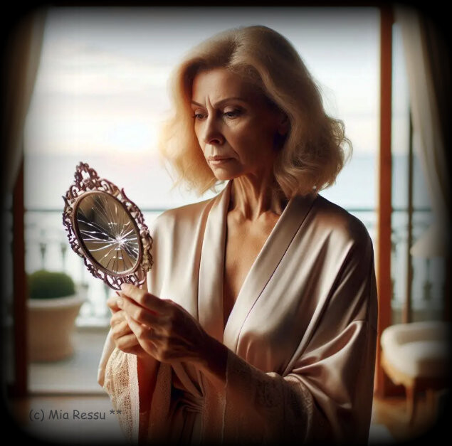Conclusão: - Parti o espelho e foi para o lixo. Foi a única solução "plausível", para não ter de enfrentar de novo, este estado de meu "descontentamento", pelo menos naquele espelho...!!