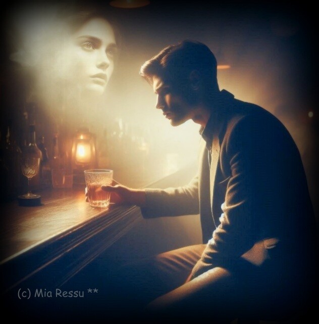 Ele agora desgastado e consumido bebe copo atrás de copo já sem gosto, para não sentir o coração demais sofrido tentando atenuar a dor do seu desgosto.